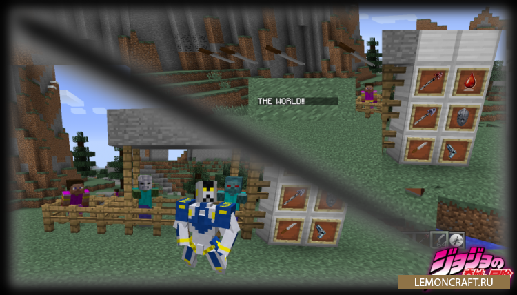 Мод на новые способности Steve's Bizarre Adventure добавляет в игру небольшие аспекты и немного механики, которые связанны с аниме и манги JoJo's Bizarre Adventure. В игре появятся вампиры, обладатели техники Хамон, боевые способности Станды. На данный момент в игре присутствуют 10 станд, которыми вы сможете заменить мечи, кирки и луки. При этом следует учитывать, сто стандам требуется большое количество еды для поддержания своих боевых способностей.